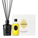 Fill 1/2 of the PAÑPURI diffuser glass vessel with the diffuser oil and immerse reed sticks in the glass vessel. Reverse sticks two to three times to saturate and diffuse scent. Reverse sticks again to re-absorb diffuser oil when scent start to dissipate. Do not re-use reed sticks with other fragrances.