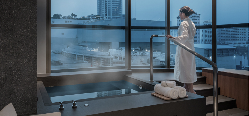 Discover five mineral-rich pools, each inspired by the Japanese onsen ritual and infused with unique properties to alleviate stress—overlooking Bangkok’s skyline in serene tranquillity.